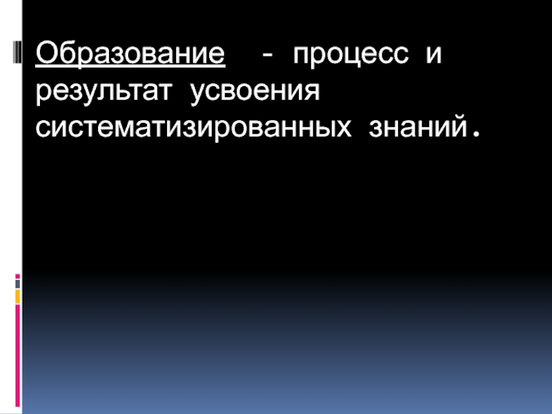 Слайд 17Образование - процесс и результат усвоения систематизированных знаний.