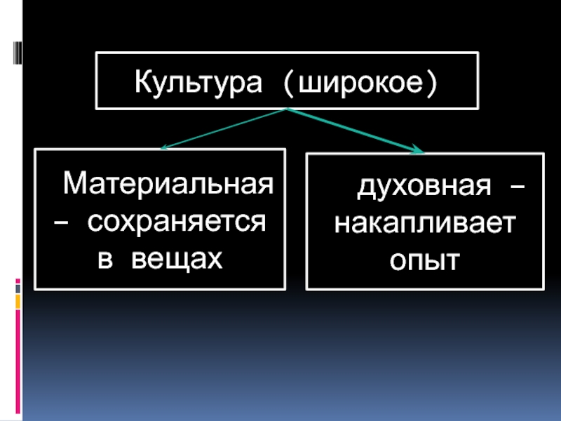 Культура (широкое) Материальная – сохраняется в вещах духовная – накапливает опыт