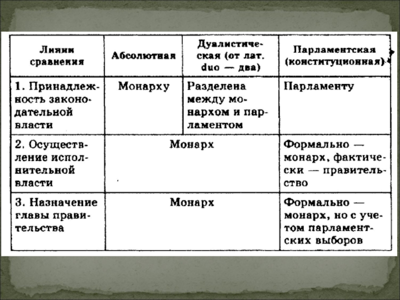 Абсолютная монархия   В абсолютной монархии вся полнота власти – законодательной, исполнительной, судебной – сосредоточена в