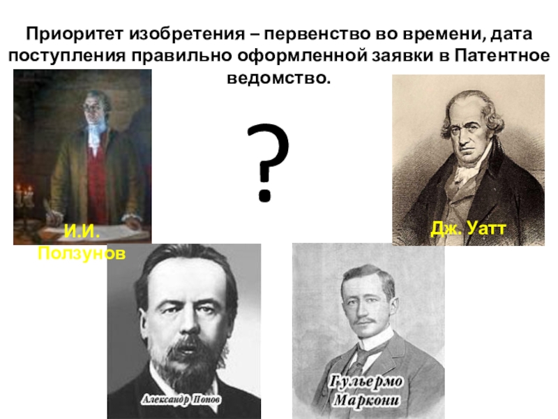 Слайд 14Приоритет изобретения – первенство во времени, дата поступления правильно оформленной заявки