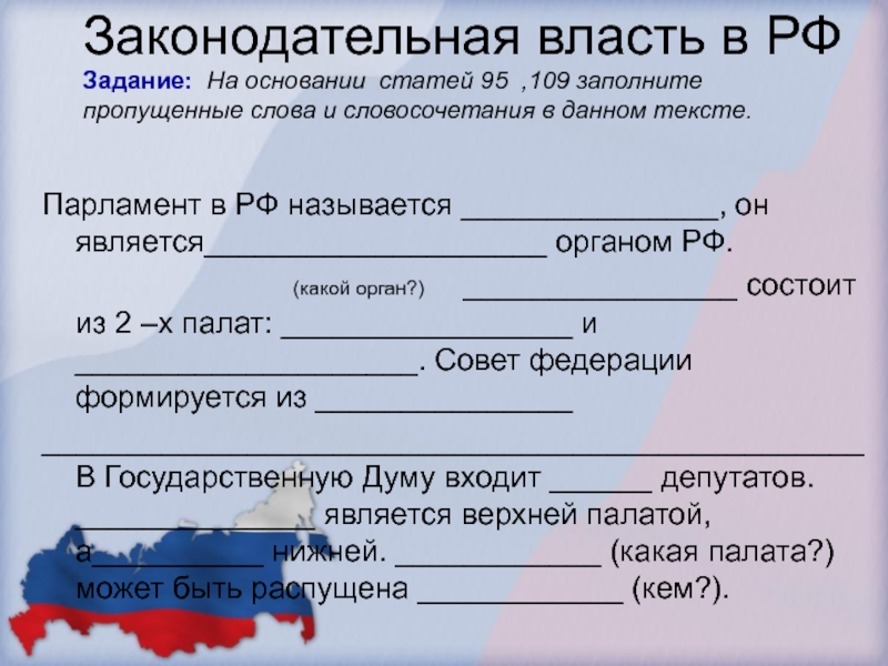 Задание: На основании статей 95 ,109 заполните пропущенные слова и словосочетания в данном тексте.