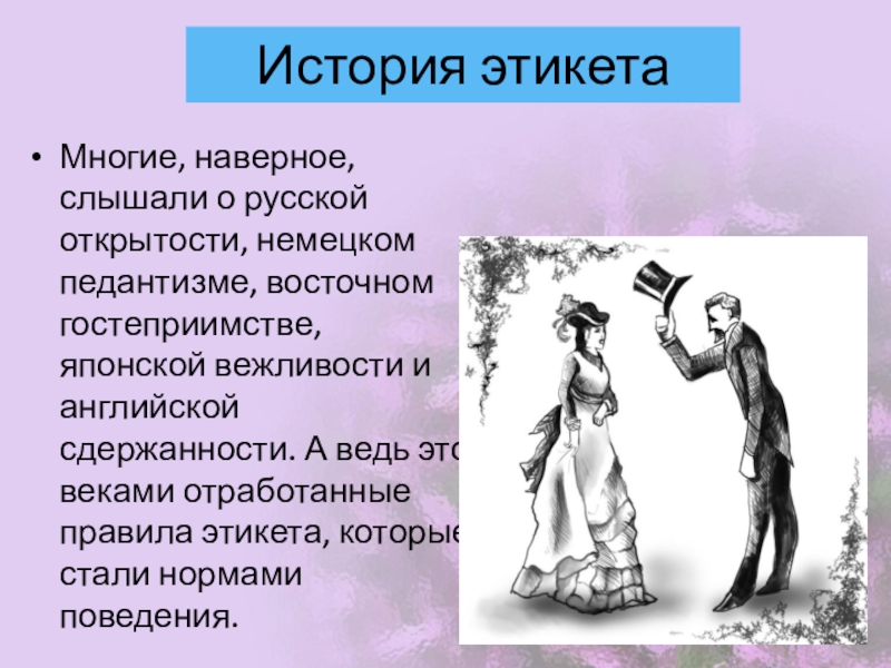 японской вежливости и английской сдержанности. А ведь это веками отработанные правила этикета, которые стали нормами поведения.
