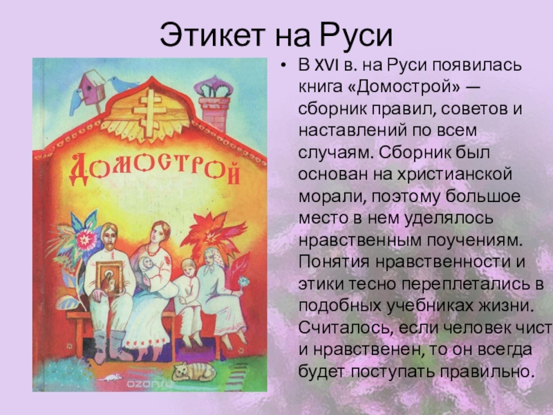 сборник правил, советов и наставлений по всем случаям. Сборник был основан на христианской морали, поэтому большое место в нем уделялось нравственным поучениям. Понятия нравственности и этики тесно переплетались в подобных учебниках жизни. Считалось, если человек чист и нравственен, то он всегда будет поступать правильно.