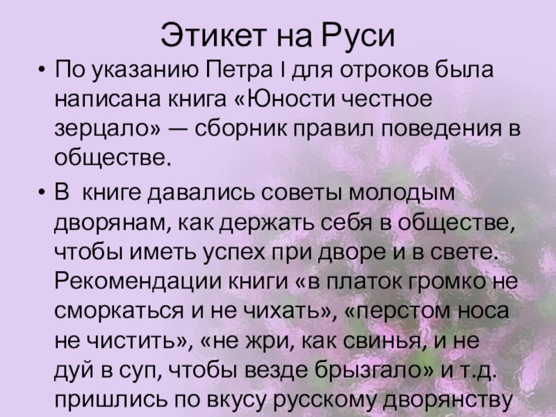 «Юности честное зерцало» — сборник правил поведения в обществе.