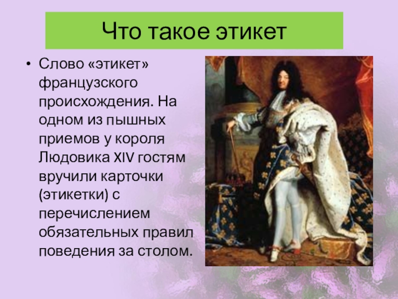 Слово «этикет» французского происхождения. На одном из пышных приемов