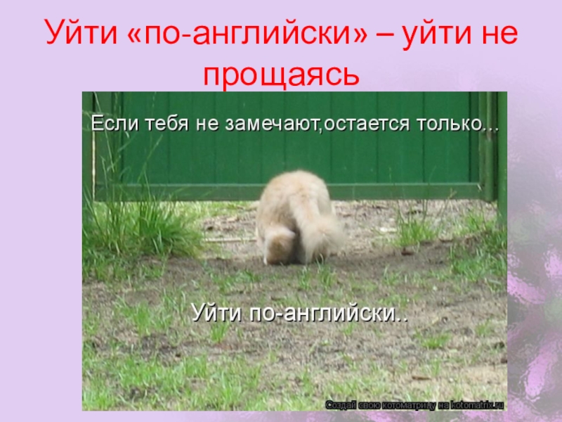 Слайд 33Уйти «по-английски» – уйти не прощаясь