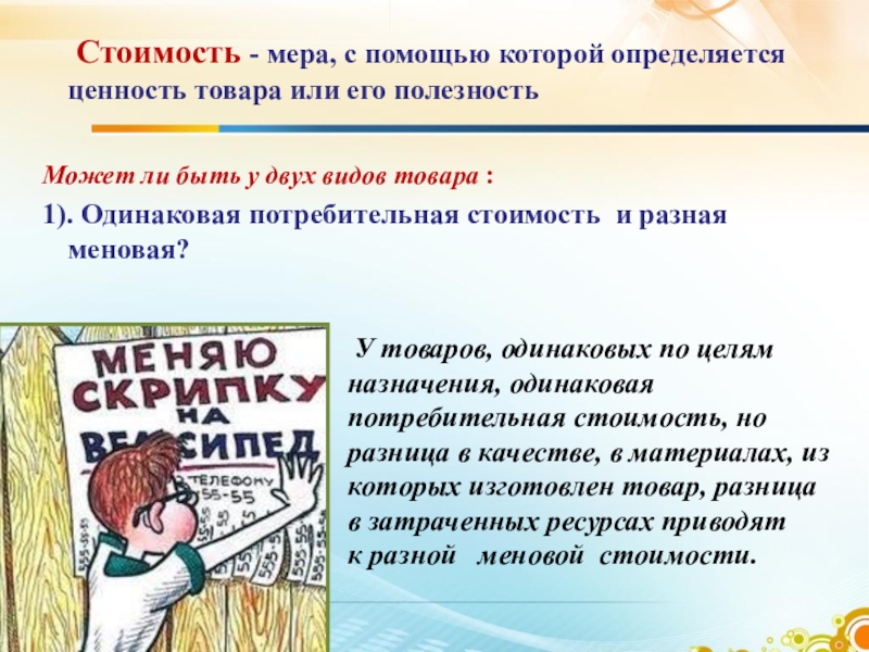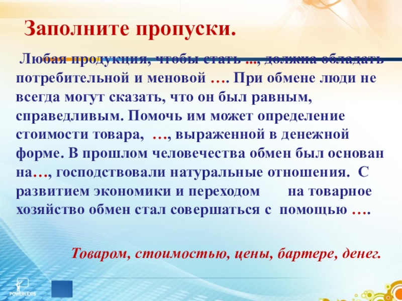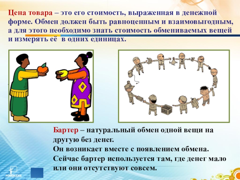 Бартер – натуральный обмен одной вещи на другую без денег.