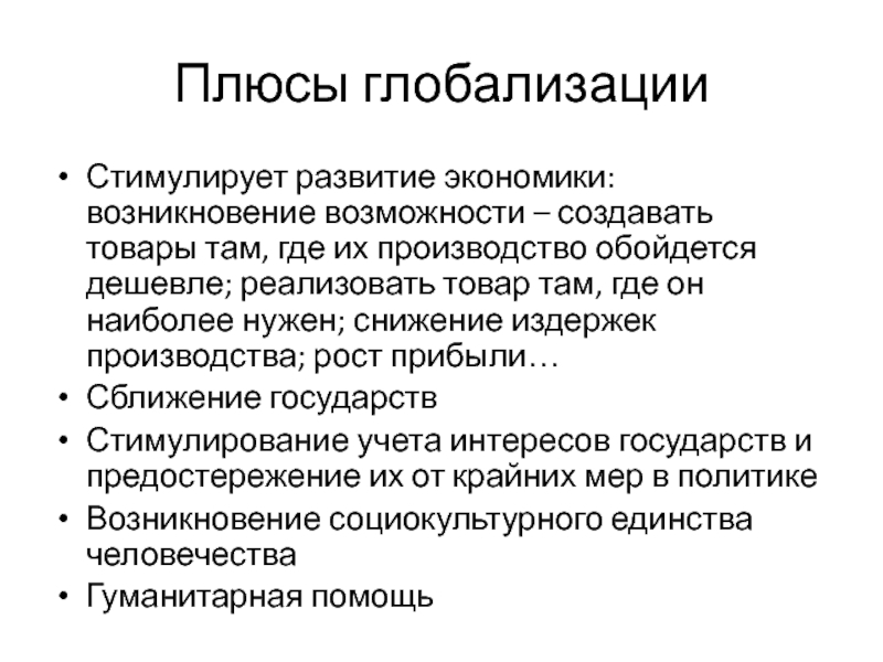 Стимулирует развитие экономики: возникновение возможности – создавать товары там, где