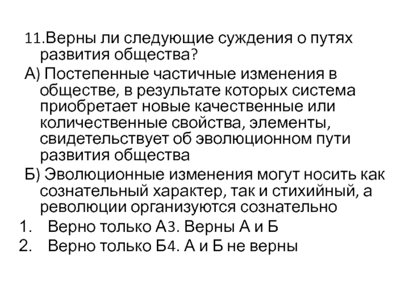 Слайд 3311.Верны ли следующие суждения о путях развития общества?
