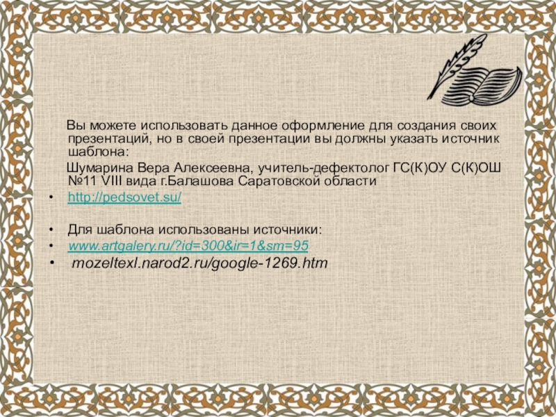 презентаций, но в своей презентации вы должны указать источник шаблона: