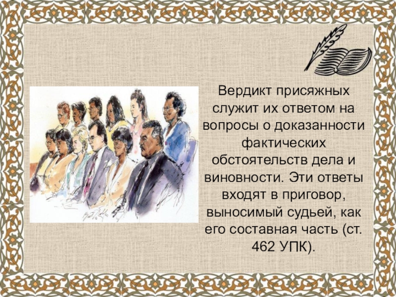 Вердикт присяжных служит их ответом на вопросы о доказанности фактических обстоятельств