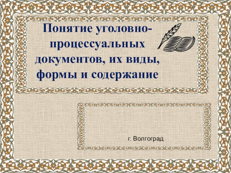 Слайд 1Понятие уголовно-процессуальных документов, их виды, формы и содержание