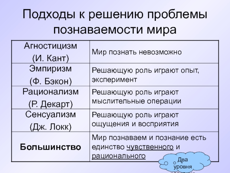 Два уровня познания