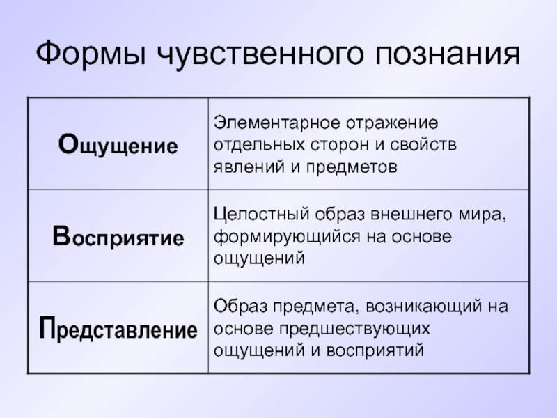 Чувственные формы познания ОВП