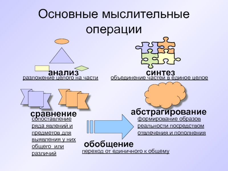 Решающую роль играют мыслительные операции