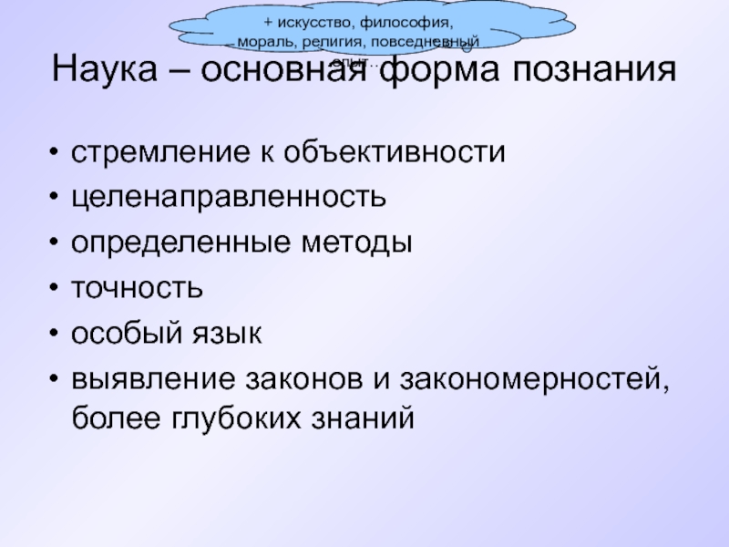 + искусство, философия, мораль, религия, повседневный опыт…