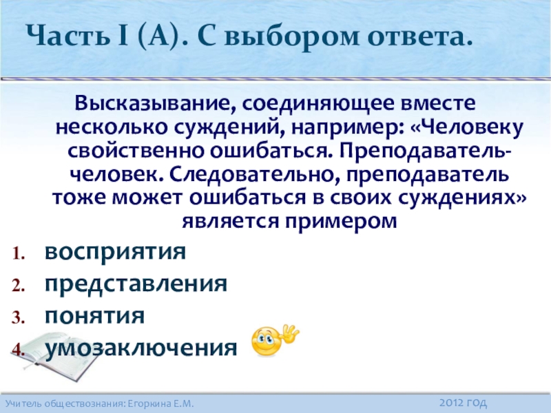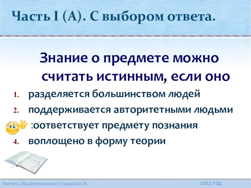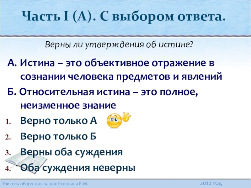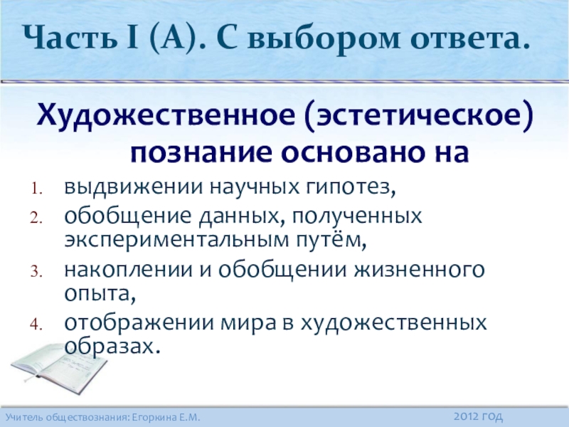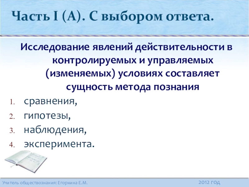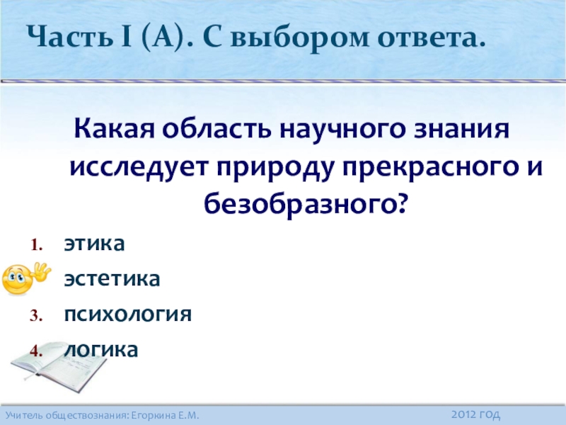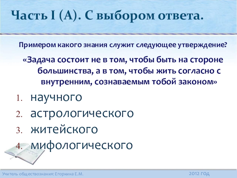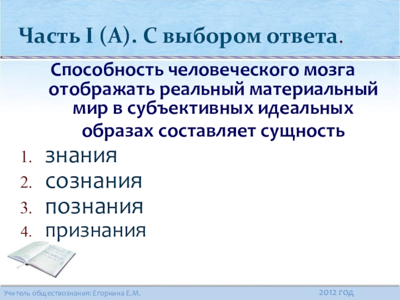 Часть I (А). С выбором ответа.