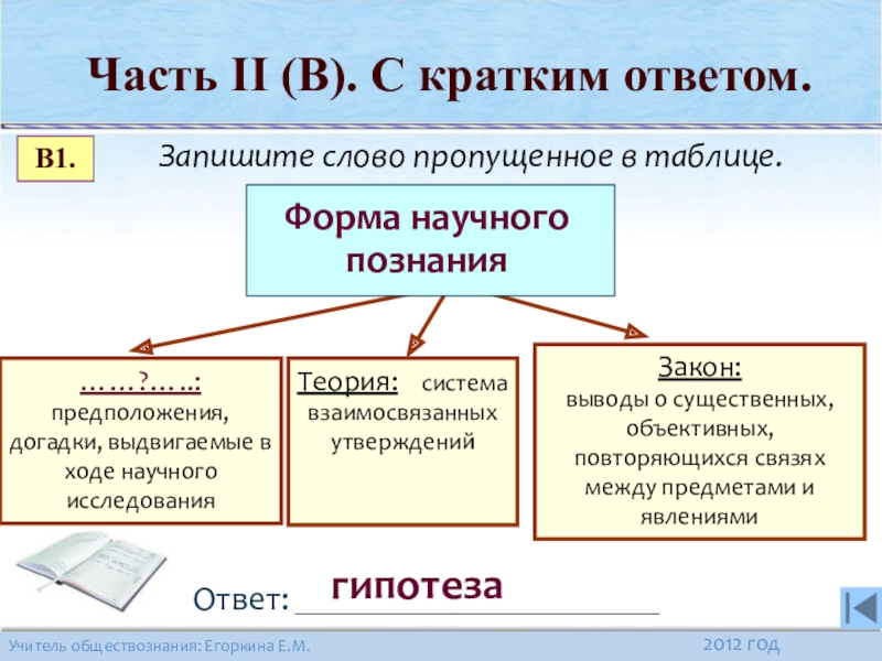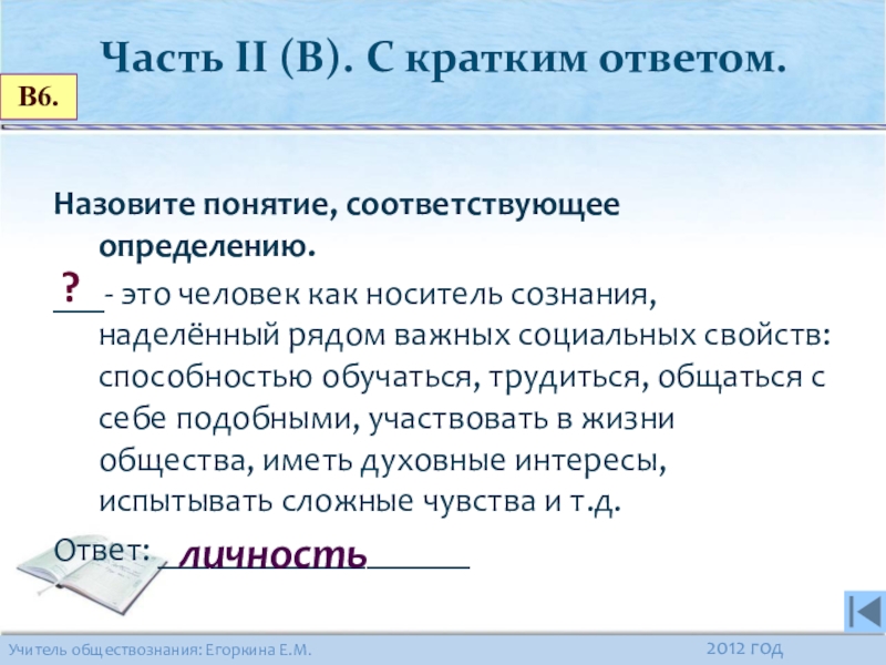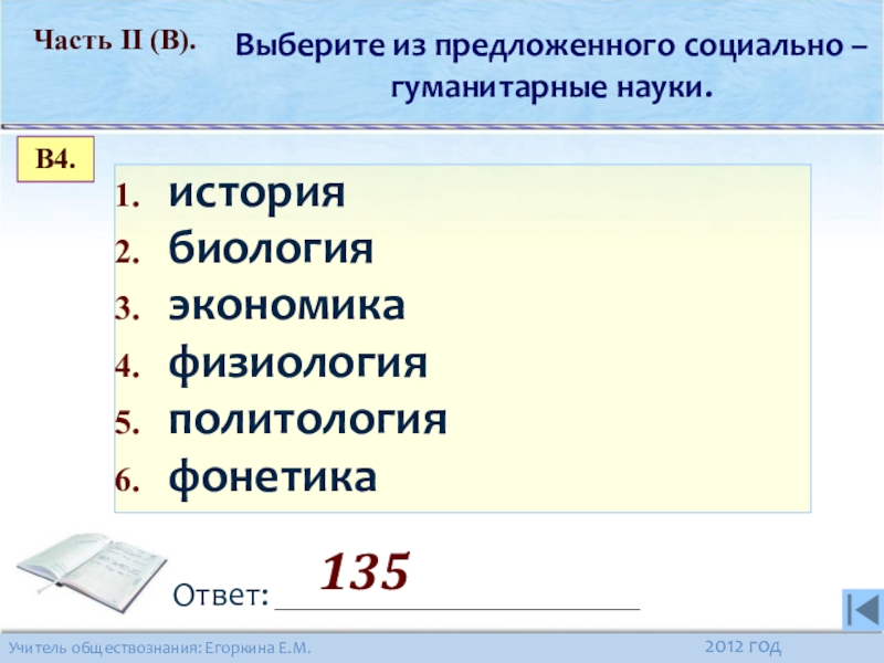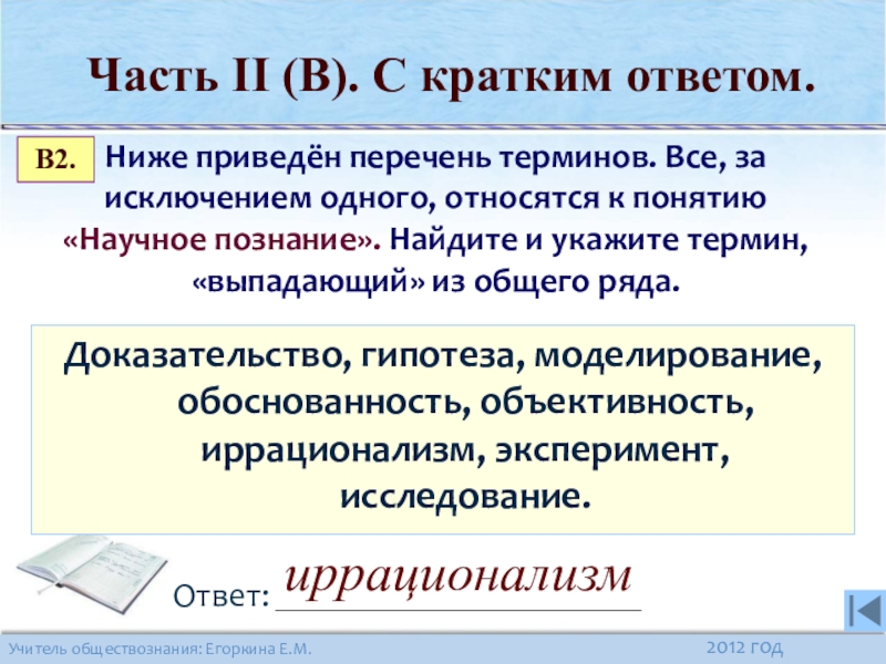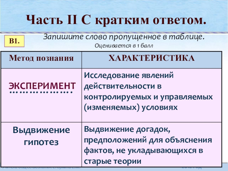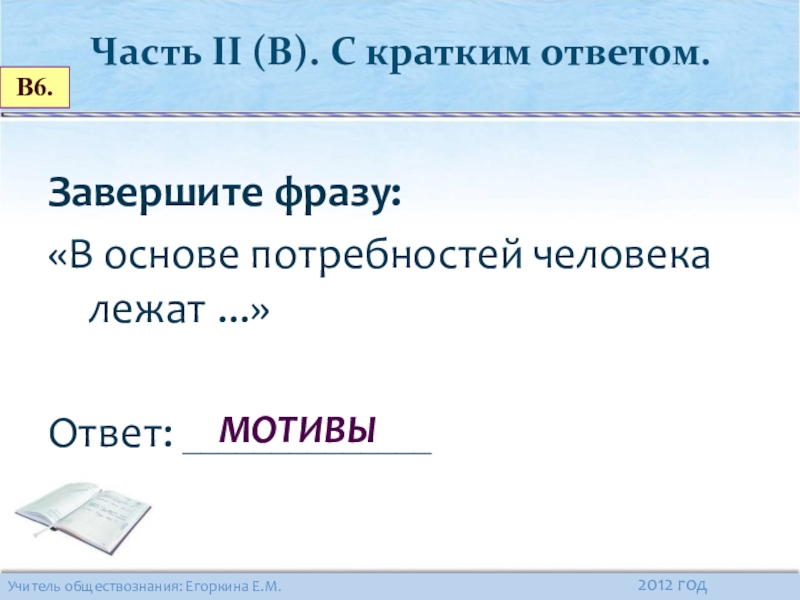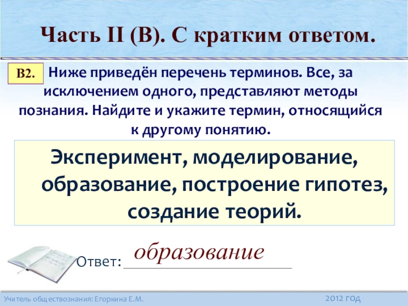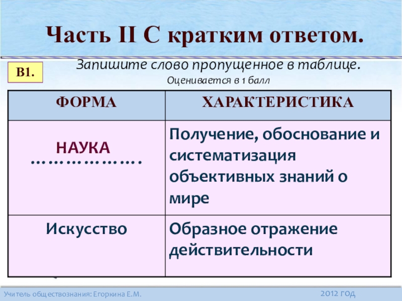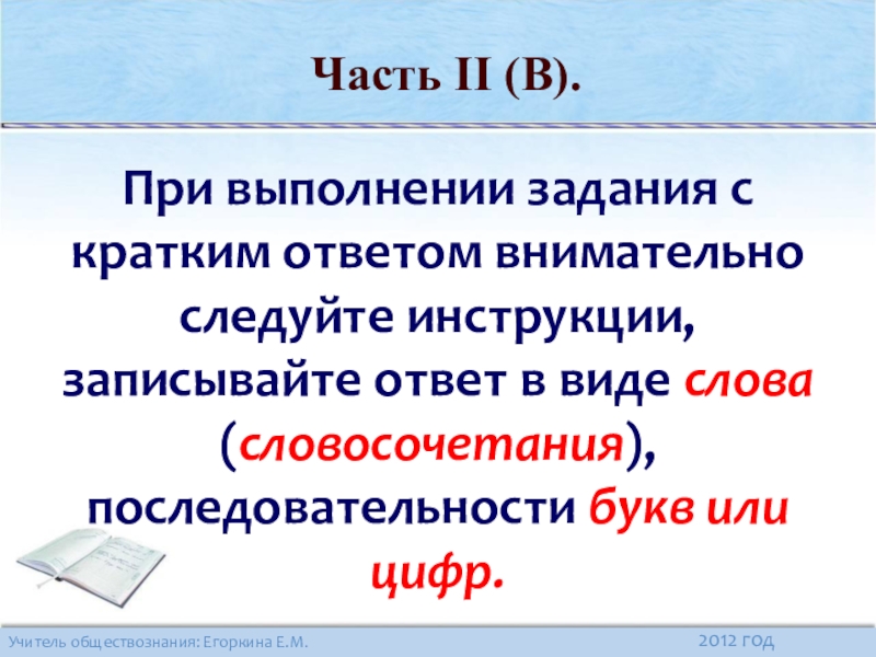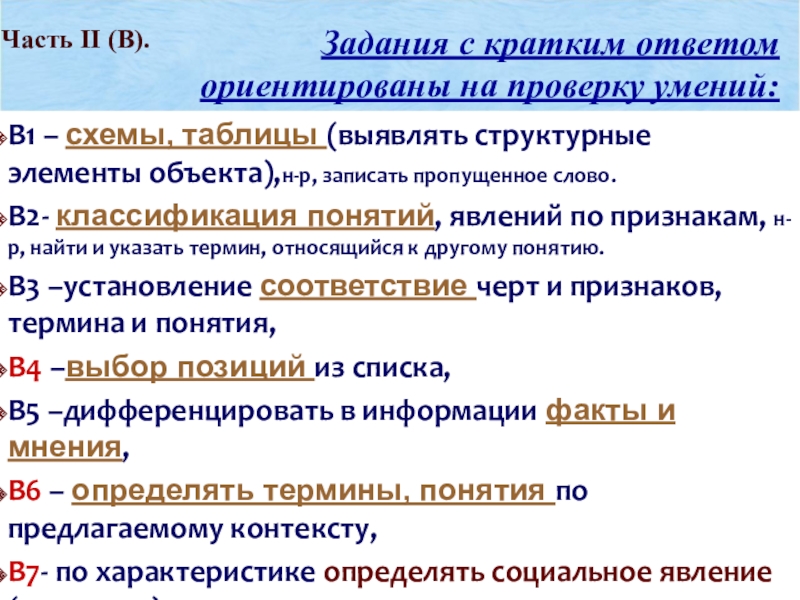 Часть II (В). С кратким ответом.
