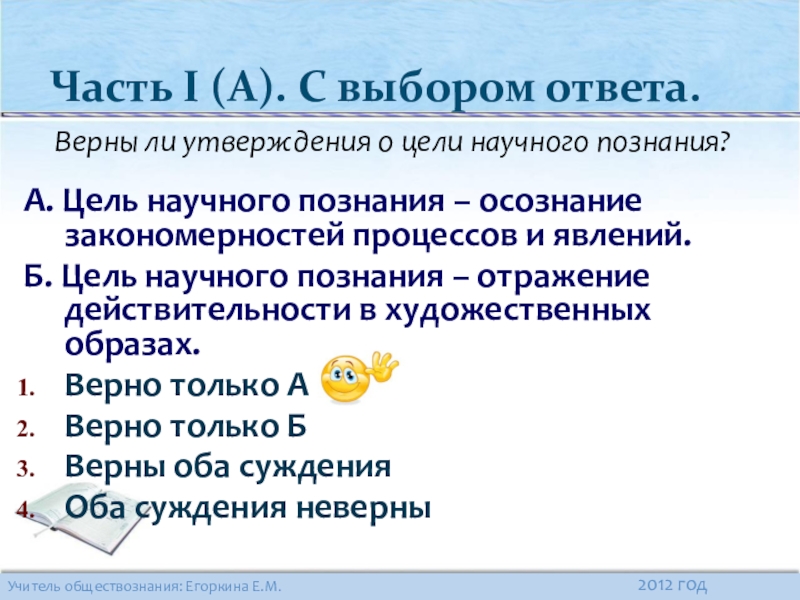 Верны ли утверждения о цели научного познания?