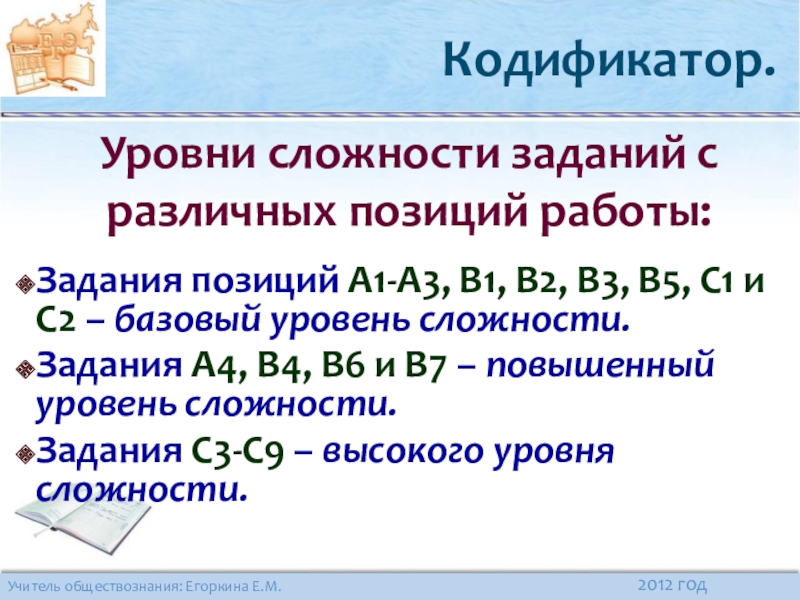 Уровни сложности заданий с различных позиций работы: