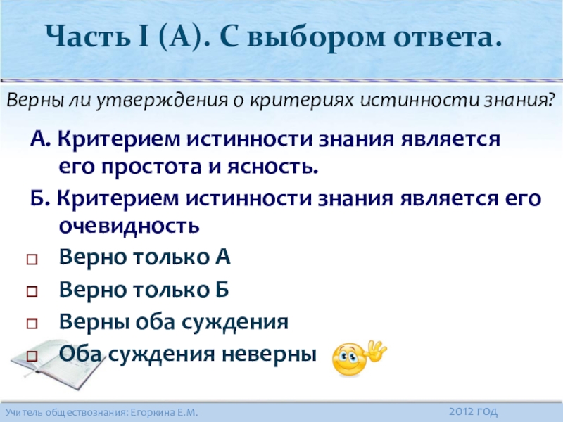 Верны ли утверждения о критериях истинности знания?