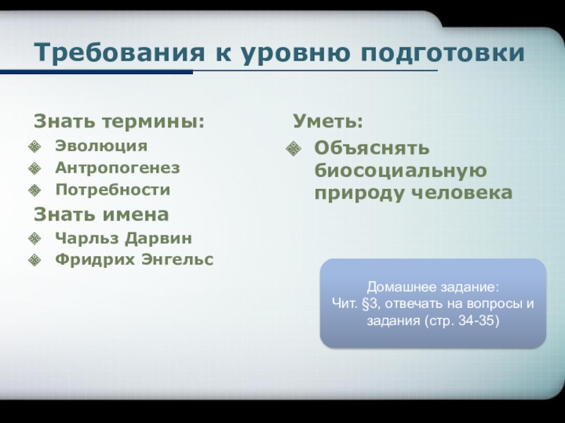 Чит. §3, отвечать на вопросы и задания (стр. 34-35)