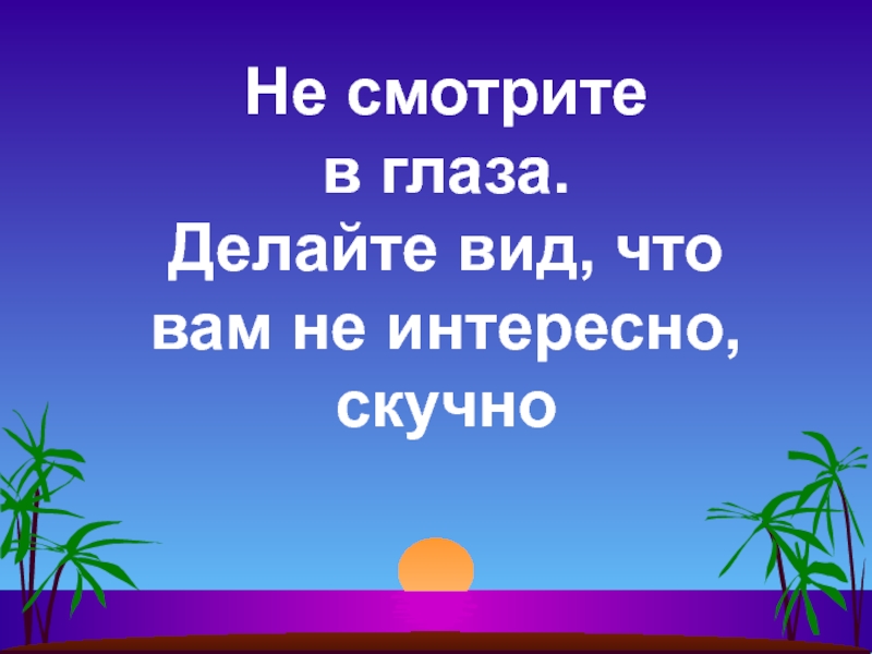 Не смотрите в глаза.Делайте вид, что вам не интересно, скучно