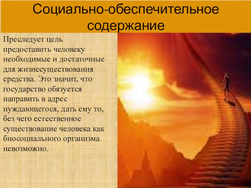 Это значит, что государство обязуется направить в адрес нуждающегося, дать ему то, без чего естественное существование человека как биосоциального организма невозможно.