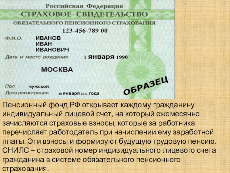 Слайд 13Пенсионный фонд РФ открывает каждому гражданину индивидуальный лицевой счет, на который