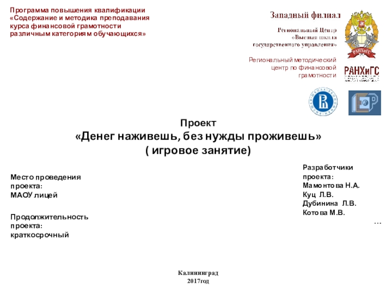 Программа повышения квалификации «Содержание и методика преподавания курса финансовой грамотности различным категориям обучающихся»
