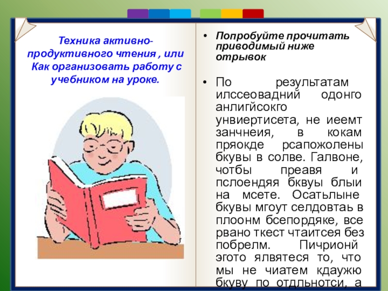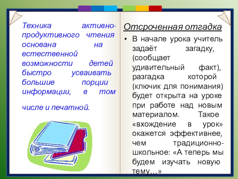 Техника активно-продуктивного чтения основана на естественной возможности детей быстро усваивать большие порции информации, в том числе и печатной.