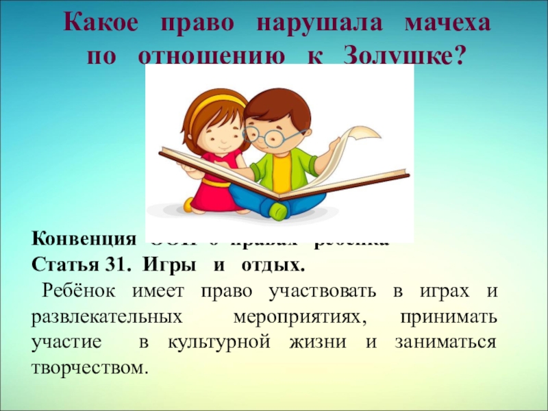 Ребёнок имеет право участвовать в играх и развлекательных мероприятиях, принимать участие в культурной жизни и заниматься творчеством.