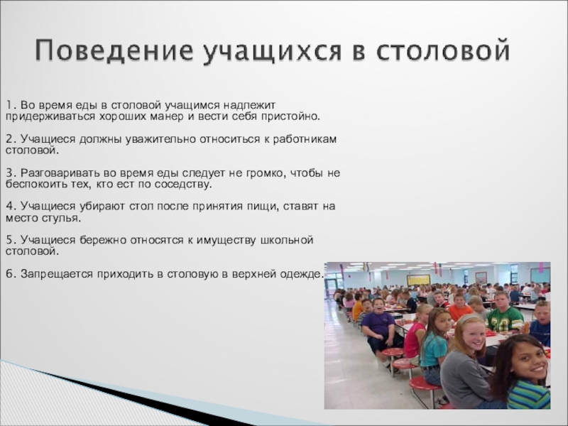 2. Учащиеся должны уважительно относиться к работникам столовой.