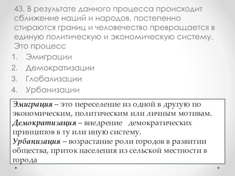 Слайд 4343. В результате данного процесса происходит сближение наций и народов, постепенно