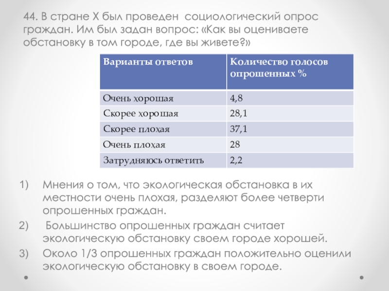 Слайд 4444. В стране Х был проведен социологический опрос граждан. Им был