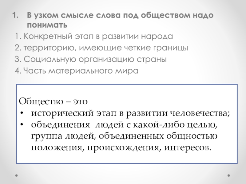 Слайд 42. В узком смысле слова под обществом надо понимать