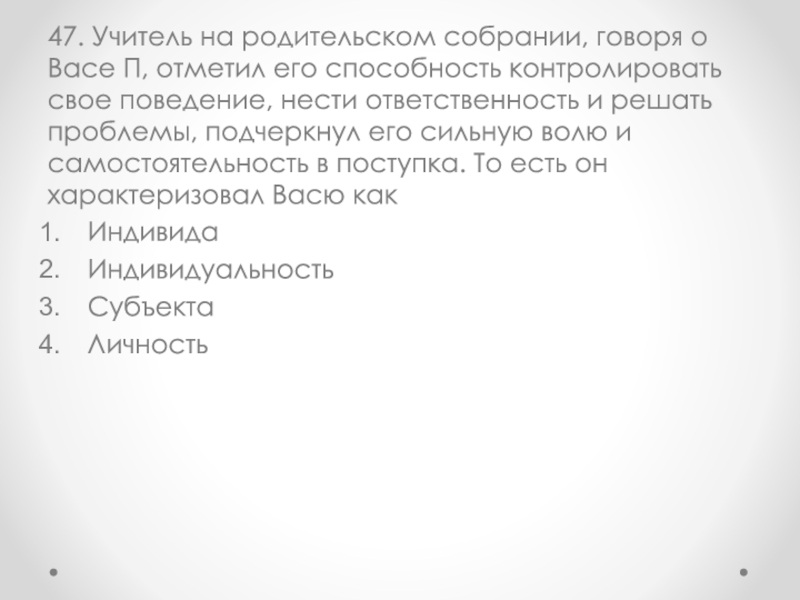 Слайд 5147. Учитель на родительском собрании, говоря о Васе П, отметил его