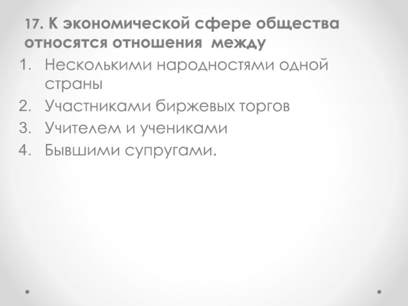 Слайд 1716. Что из перечисленного относится к экономической сфере общества?