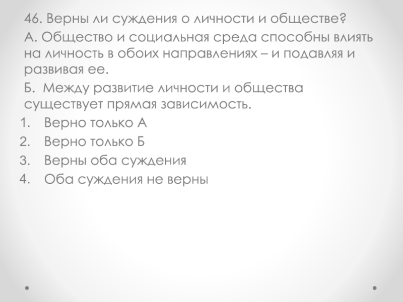 Слайд 4846. Верны ли суждения о личности и обществе?