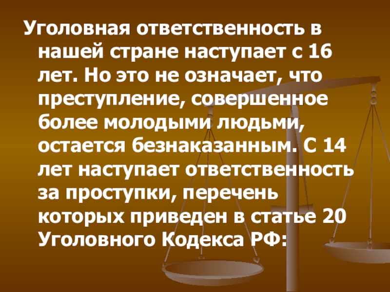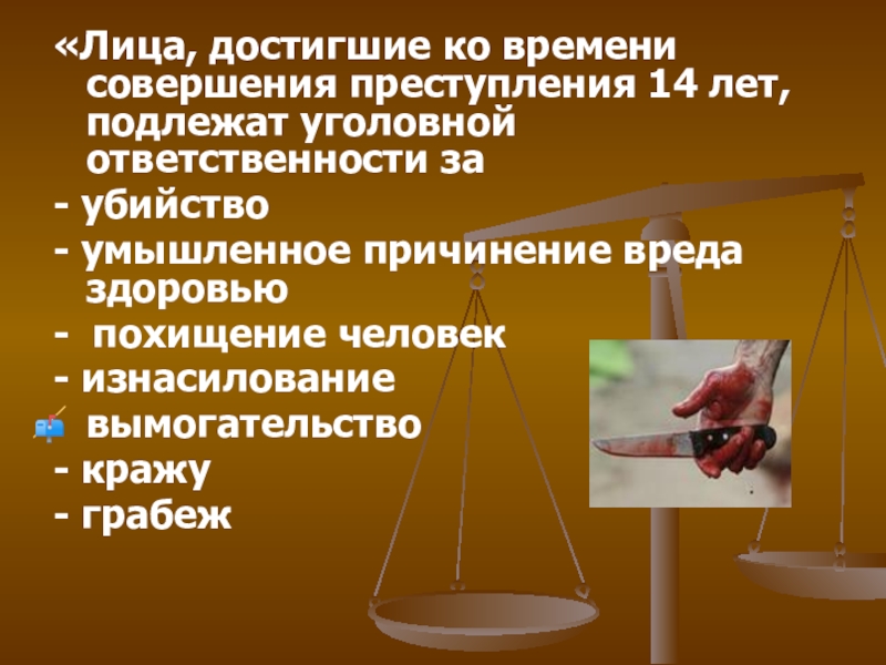 Слайд 18«Лица, достигшие ко времени совершения преступления 14 лет, подлежат уголовной ответственности