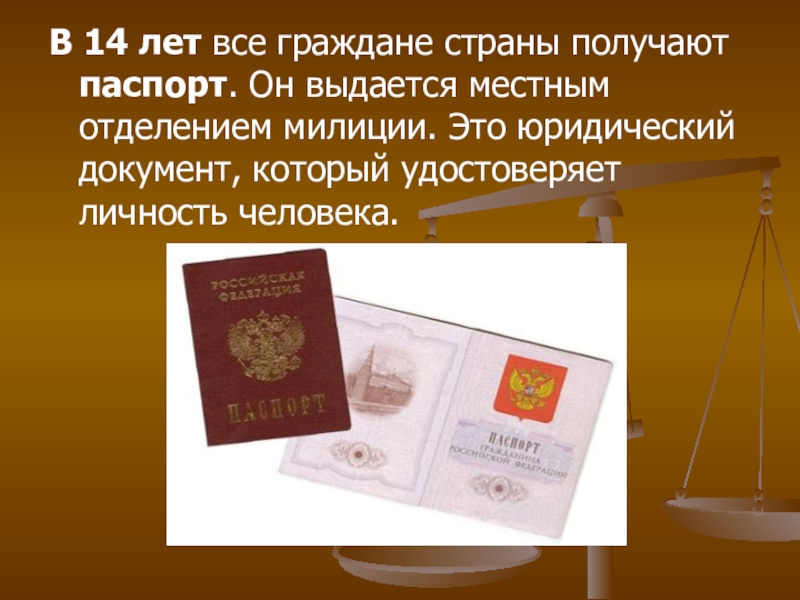 Слайд 6В 14 лет все граждане страны получают паспорт. Он выдается местным