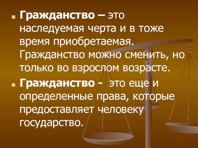 Слайд 9Гражданство – это наследуемая черта и в тоже время приобретаемая. Гражданство