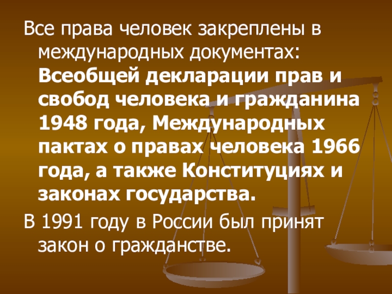 Гражданство - это еще и определенные права, которые предоставляет человеку государство.
