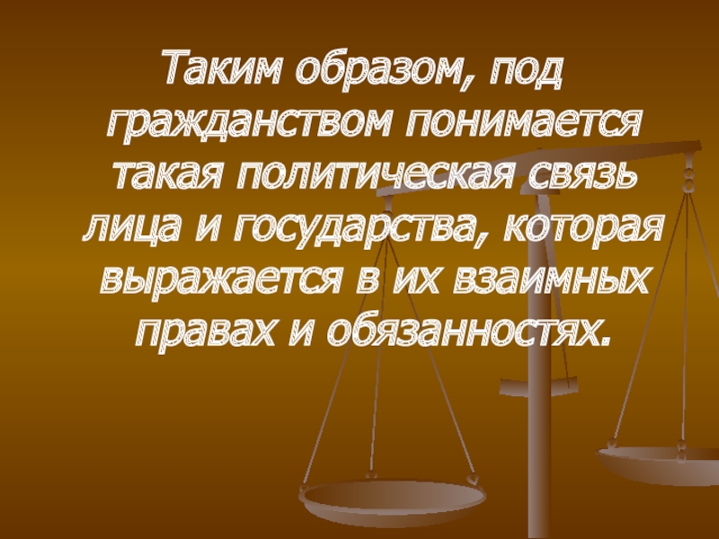 Слайд 14Таким образом, под гражданством понимается такая политическая связь лица и государства,
