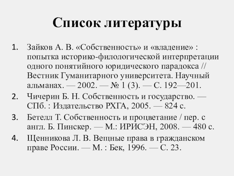 Зайков А. В. «Собственность» и «владение» : попытка историко-филологической интерпретации одного