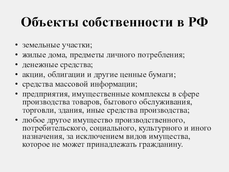 Слайд 12Объекты собственности в РФ