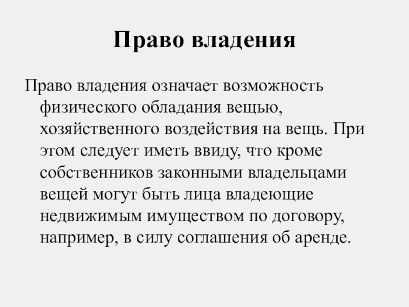 Право владения означает возможность физического обладания вещью, хозяйственного воздействия на