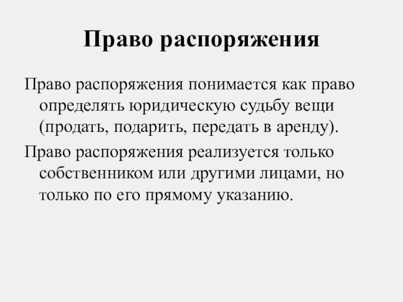 Право распоряжения понимается как право определять юридическую судьбу вещи (продать,