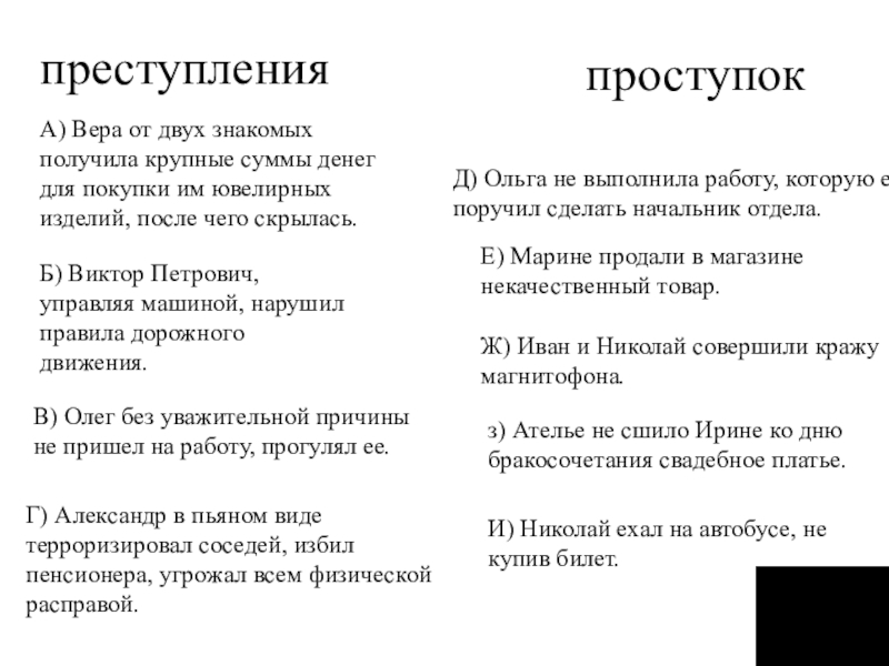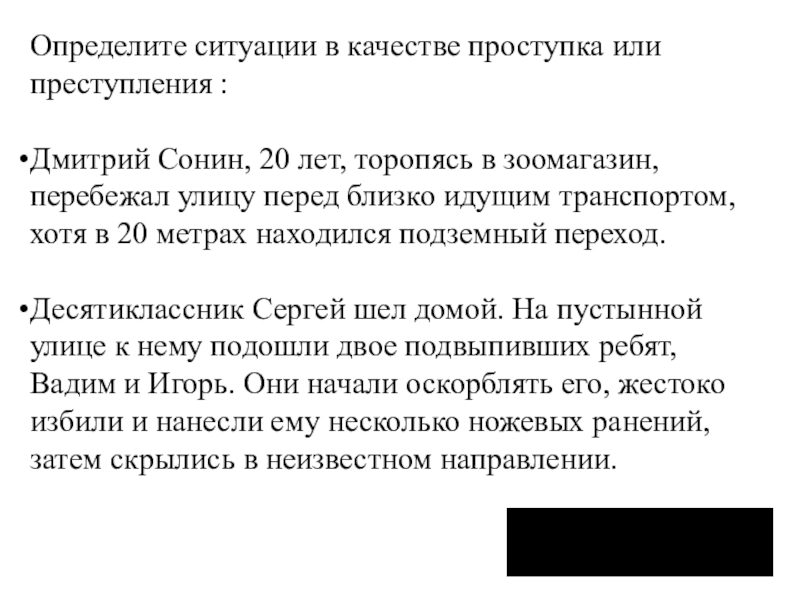 Слайд 36Определите ситуации в качестве проступка или преступления :