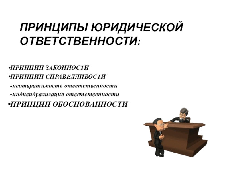 Слайд 26ПРИНЦИПЫ юридической ответственности:
